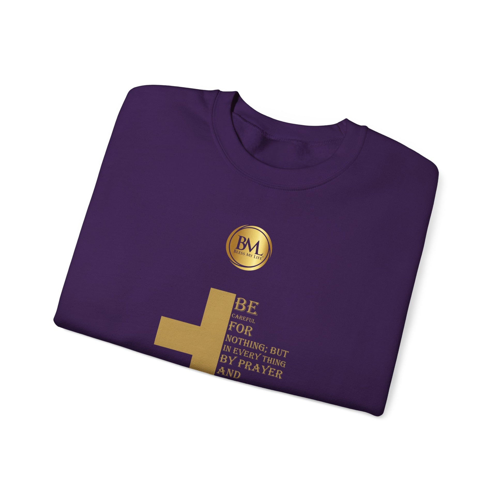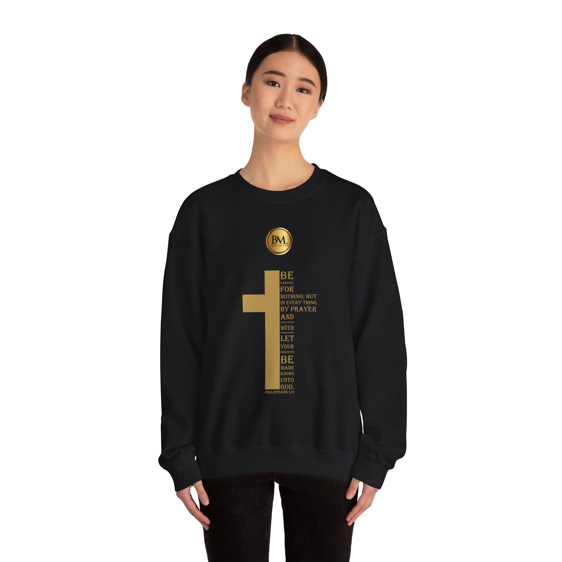 Be careful for nothing; but in every thing by prayer and supplication with thanksgiving let your requests be made known unto God, Bless My Life ® Philippians 4:6 Crewneck Sweatshirt